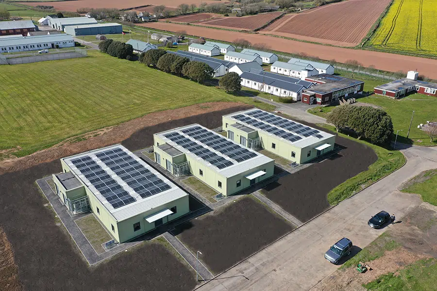 Following Nesscliff, additional sites including Castlemartin Training Area in Pembrokeshire, Brunswick Training Camp in Surrey, and further buildings at Westdown Camp achieved even better EPC ratings of -7, -9, and -10 respectively. The programme also included several double-storey buildings, the first of which were installed at Brunswick Training Camp, providing 104 bed spaces while remaining carbon negative.